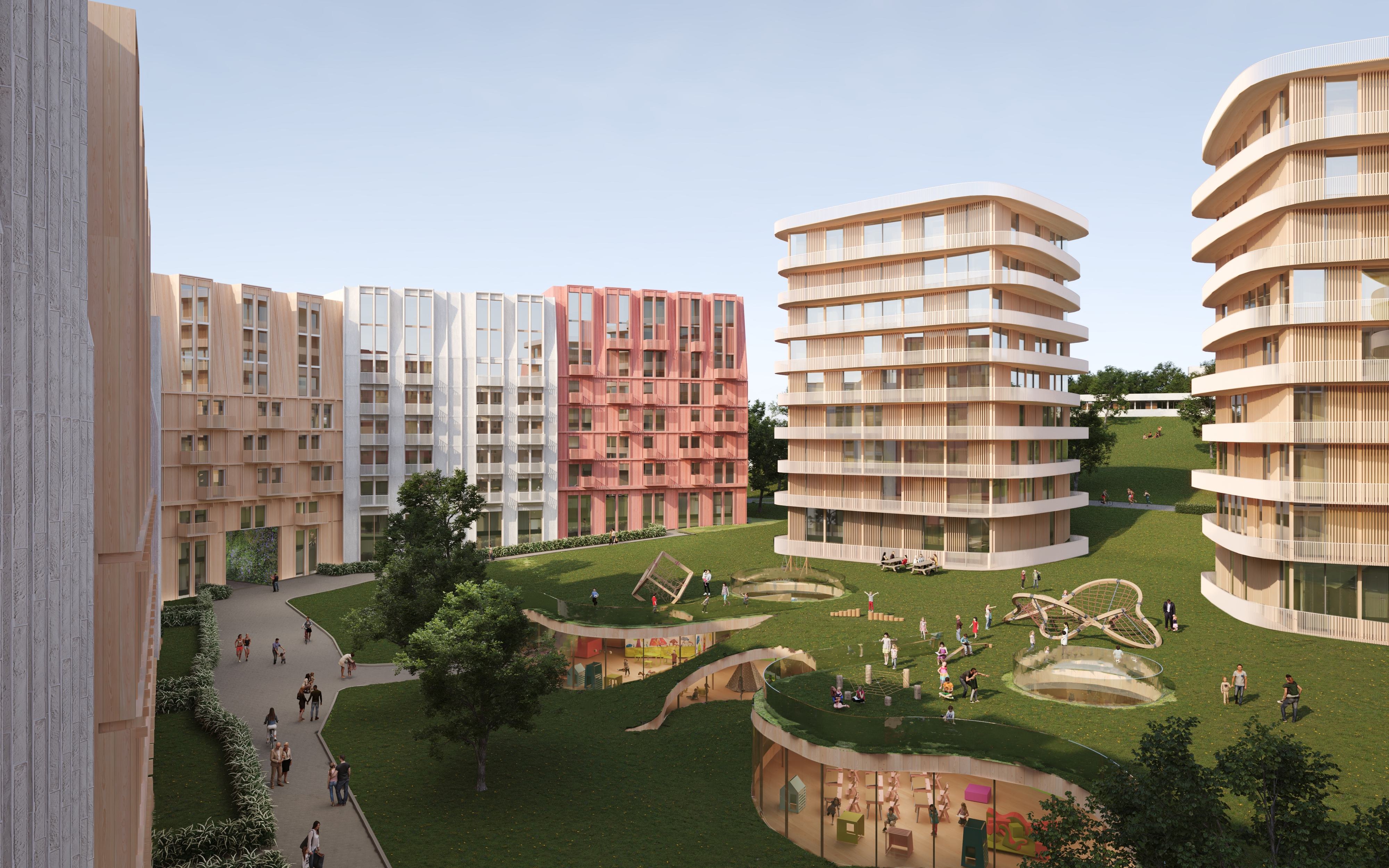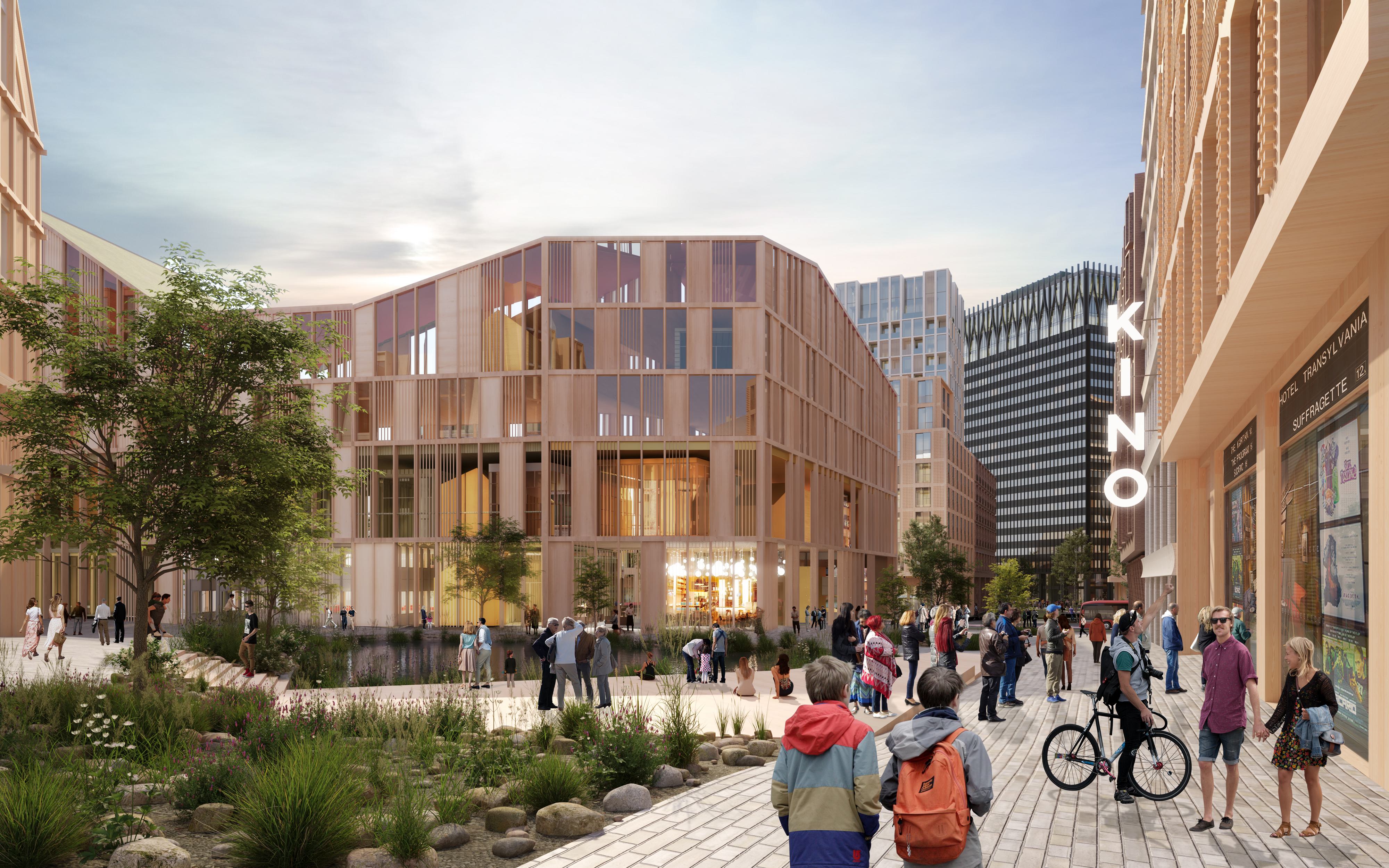 Planene omfatter eksempelvis også barnehage, et tidsriktig handelstilbud, restauranter, barer, kultursaler, forsamlingshus, kino, bibliotek og ungdomshus.