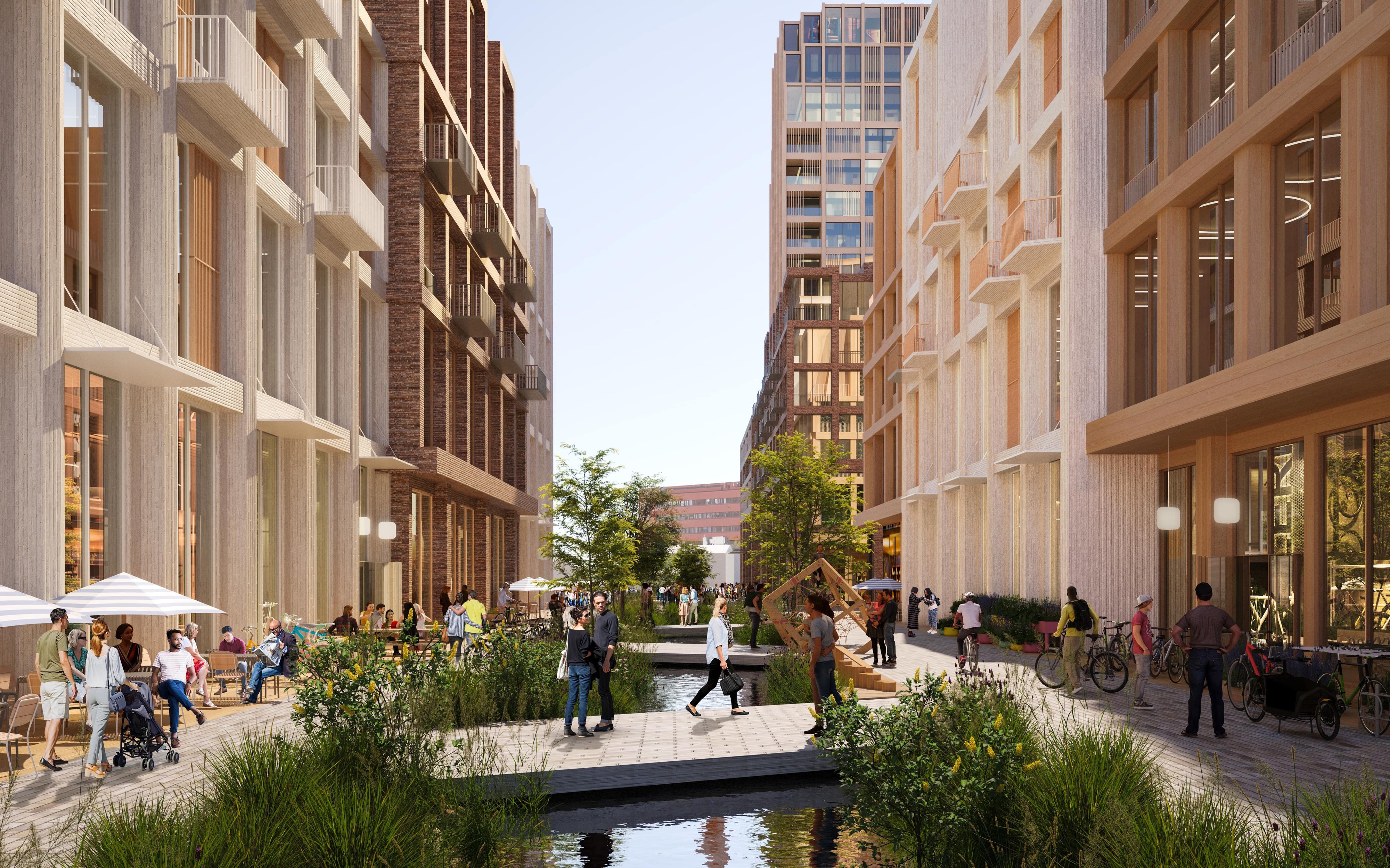 Urbane byrom med vann og natur